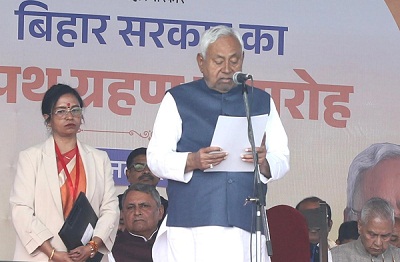 नीतीश कुमार ने 10वीं बार बिहार के मुख्यमंत्री पद की शपथ ली। राजधानी के ऐतिहासिक गांधी मैदान में राज्यपाल आरिफ मोहम्मद खान ने उन्हें पद
