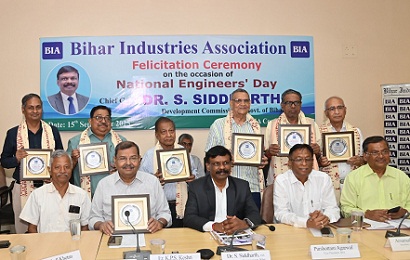बिहार इंडस्ट्रीज एसोसिएशन (BIA) ने राष्ट्रीय अभियंता दिवस पर 7 अभियंता सदस्यों को सम्मानित किया। सम्मान पाने वालों में बीआईए अध्यक्ष केपीएस केशरी, एकेपी सिन्हा,