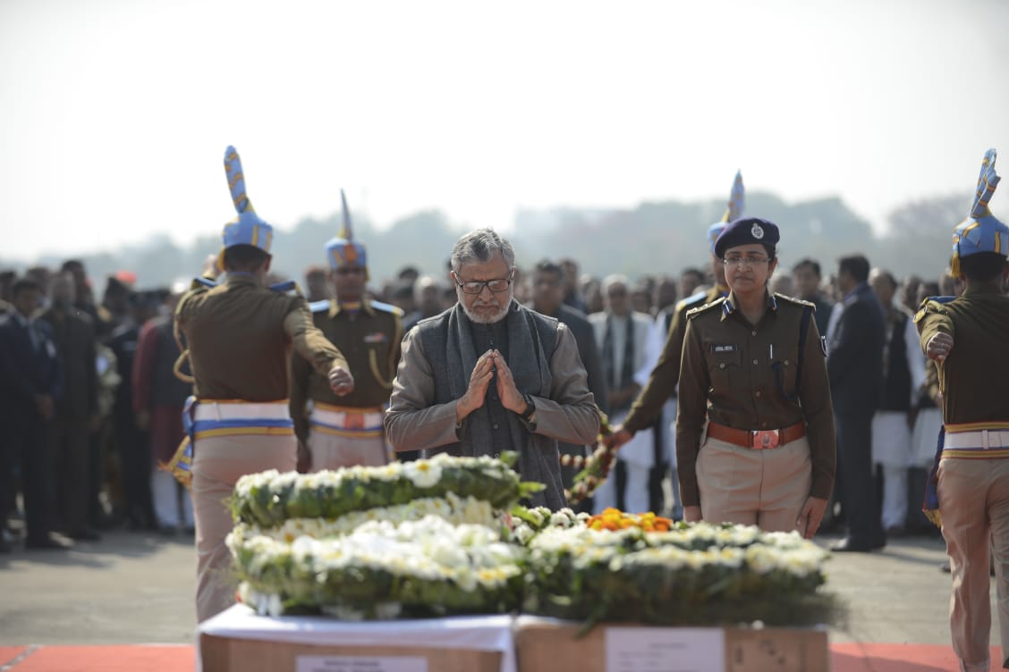 इन्होंने भी दी श्रद्धांजलि : डीजीपी गुप्तेश्वर पांडे, अपर मुख्य सचिव आमिर सुबहानी, एडीजी जेएस गंगवार, पटना आईजी सुनील कुमार, डीआईजी राजेश कुमार, डीएम कुमार रवि, एसएसपी गरिमा मलिक, वायुसेना, एसएसबी एवं सीआरपीएफ के वरिष्ठ अधिकारियों ने अपनी भावभीनी श्रद्धांजलि दी।
