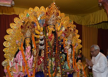 पटना। महाष्टमी पर मुख्यमंत्री नीतीश कुमार ने बांस घाट स्थित काली मंदिर में शक्ति की देवी के दर्शन किए और पूजा-अर्चना की। उन्होंने देश एवं प्रदेश की प्रगति की कामना की। नाला रोड स्थित रामकृष्ण मिशन आश्रम पर माता रानी का आशीर्वाद लिया। लंगर टोली दुर्गा मंदिर में देवी के महागौरी स्वरूप के दर्शन किए। गर्दनीबाग ठाकुरबाड़ी प्रबंध न्यास समिति स्थित मां दुर्गा मंदिर में भी पूजा की। पूजा समिति ने सीएम को चुनरी ओढ़ा कर स्वागत किया।