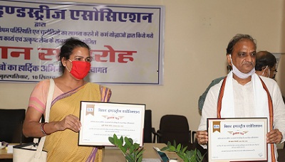 पटना। कोविड-19 महामारी से उत्पन्न विषम परिस्थिति में उत्कृष्ट सेवा के लिए बिहार इंडस्ट्रीज एसोसिएशन ने 15 लोगों को सम्मानित किया। सम्मानित होने वालों में संजय सत्यदर्शी, डाॅ संजीव कुमार, डाॅ अजय सिन्हा, अजय कुमार शर्मा, अशोक कुमार शर्मा, कमल नोपानी, रेश्मा प्रसाद, धीरेंद्र गुप्ता एवं डाॅ तुलिका सिंह हैं।