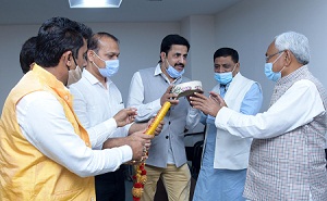 पटना। बेंगलुरु के पैलेस ग्राउंड में 14 मार्च को विद्यापति महापर्व समारोह का आयोजन होगा। इस विश्वस्तरीय समारोह में शामिल होने के लिए मुख्यमंत्री नीतीश कुमार को अखिल भारतीय एकता मंच ने निमंत्रण दिया है। मंच के अध्यक्ष उदय सिंह के नेतृत्व में एक प्रतिनिधिमंडल विधानमंडल परिसर में मुख्यमंत्री से मिला और उन्हें माला, पाग एवं अंगवस्त्र भेंट किए।