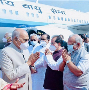 पटना। राष्ट्रपति रामनाथ कोविंद तीन दिवसीय दौरे पर बुधवार को वायु सेना के विशेष विमान से पटना पहुंचे। पटना एयरपोर्ट पर राज्यपाल फागू चौहान, मुख्यमंत्री नीतीश कुमार, बिहार विधान परिषद् के कार्यकारी सभापति अवधेश नारायण सिंह, विधानसभा के अध्यक्ष विजय कुमार सिन्हा, डिप्टी सीएम तारकिशोर प्रसाद एवं रेणु देवी ने राष्ट्रपति का स्वागत किया।