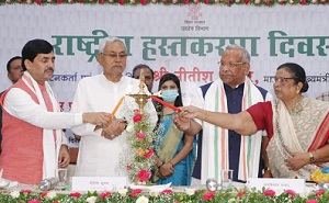 पटना। मुख्यमंत्री नीतीश कुमार ने हस्तकरघा क्षेत्र के विकास के लिए समेकित बुनकर विकास योजना की घोषणा की है। उन्होंने कहा कि इससे बुनकरों को विभिन्न योजनाओं का लाभ लेने के लिए अलग-अलग प्रक्रियाओं से नहीं गुजरना होगा। बिहार की टेक्सटाइल एवं लेदर पॉलिसी का भी लाभ उठाने की उन्होंने बुनकरों से अपील की। राष्ट्रीय हस्तकरघा दिवस पर आयोजित एक कार्यक्रम को मुख्यमंत्री संबोधित कर रहे थे।