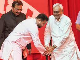 पटना। नीतीश कुमार ने आठवीं बार मुख्यमंत्री के रूप में एवं तेजस्वी प्रसाद यादव ने दूसरी बार डिप्टी सीएम पद की शपथ ली। राज्यपाल फागू चौहान ने राजभवन स्थित राजेंद्र मंडप में दोनों को शपथ दिलाई। तेजस्वी इससे पहले 20 नवंबर 2015 से 26 जुलाई 2017 तक डिप्टी सीएम रहे थे।