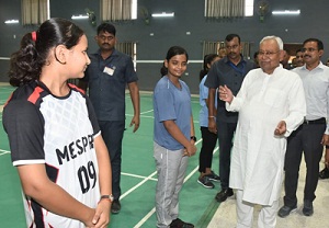 मुख्यमंत्री ने बांका में जीर्णाेद्धार कराये गये इंडोर स्टेडियम का भी निरीक्षण किया। स्टेडियम में बैंडमिंटन खिलाड़ियों से मुख्यमंत्री ने कहा कि पढ़ाई के साथ खेलकूद भी बहुत जरूरी है। इससे शारीरिक और मानसिक विकास ठीक रहता है। इस दौरान स्थानीय महिला कलाकारों ने पारंपरिक नृत्य कर मुख्यमंत्री का अभिनंदन किया।