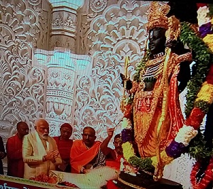 अयोध्या में करीब 500 वर्षों के लंबे इंतजार के बाद रामलला अपने भव्य मंदिर में विराजमान हुए। शंखनाद और मंत्रोच्चार के बीच रामलला की प्राण प्रतिष्ठा अभिजीत मुहूर्त में हुई। यजमान के रूप में प्रधानमंत्री नरेंद्र मोदी थे।